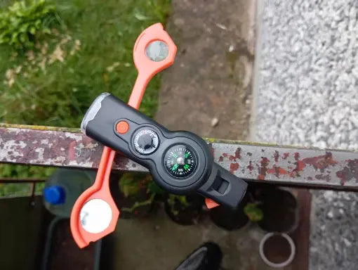 Your ultimate outdoor multi-tool combining safety, navigation, and survival.